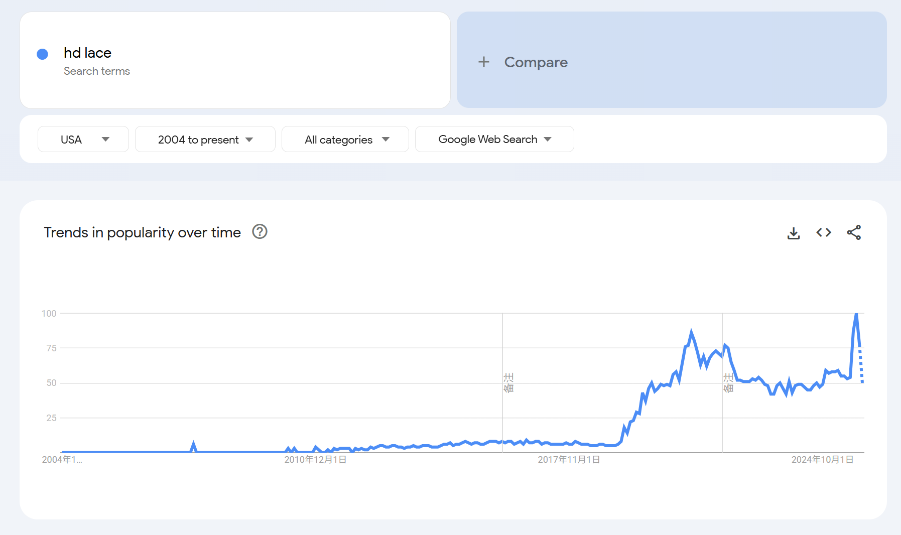 The search volume of HD Lace surged from 2019,and reached a peak in 2021.