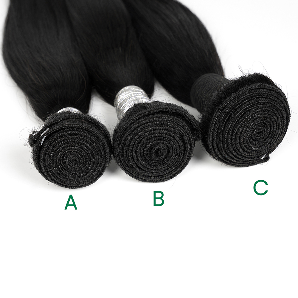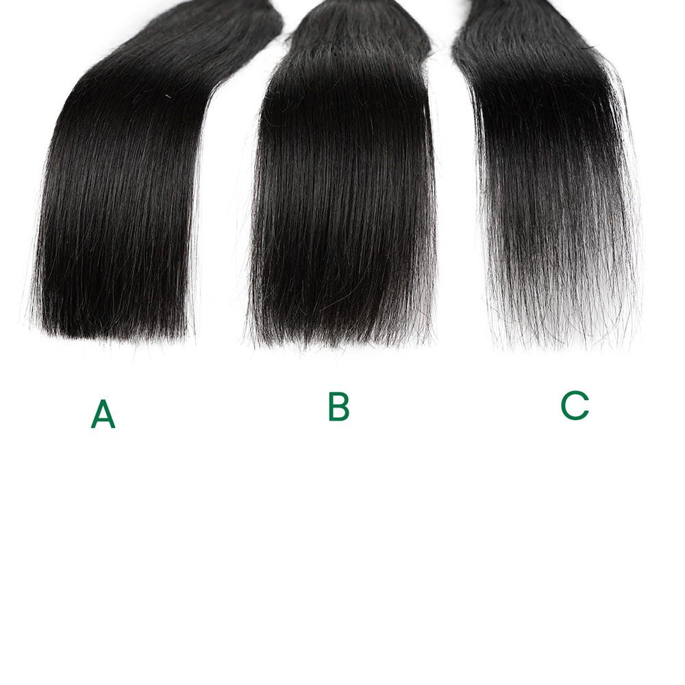 And let’s compare the hair ends,the hair ends of A bundle is the thickest,then is the B,C bundle is the thinnest.